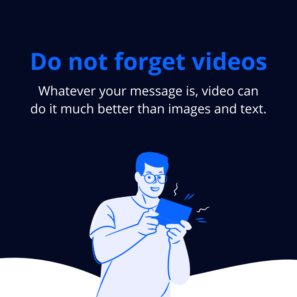 Whatever your message is, videos for real estate can do it much better than images and text. Video walkthroughs, listing videos, virtual open houses, tips and tricks, live video FAQ sessions, etc., are all examples of great video content you can share on social media to inform, educate, and entertain your audience.