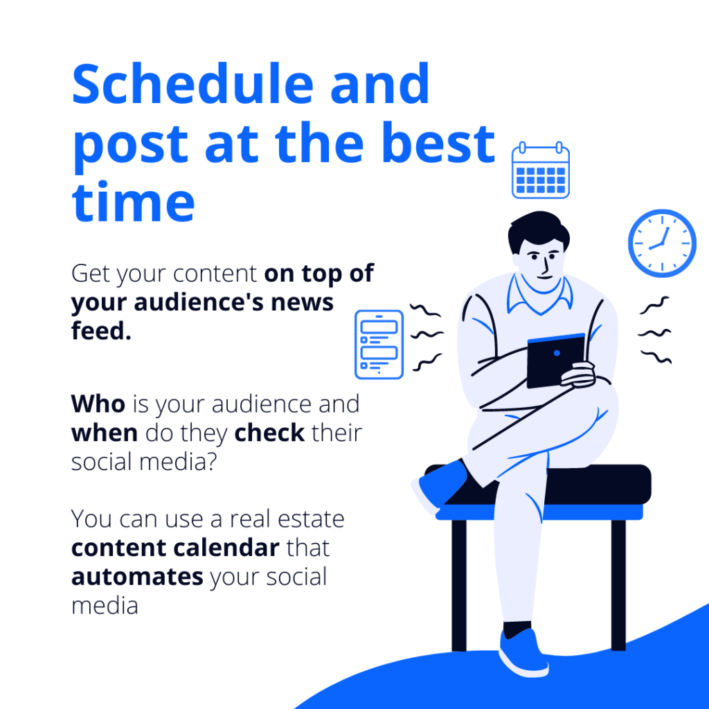 Many examples of times that supposedly work for real estate on social media. They might help, but the best time hugely depends on your audience. Who is your audience, and when do they check their social media?