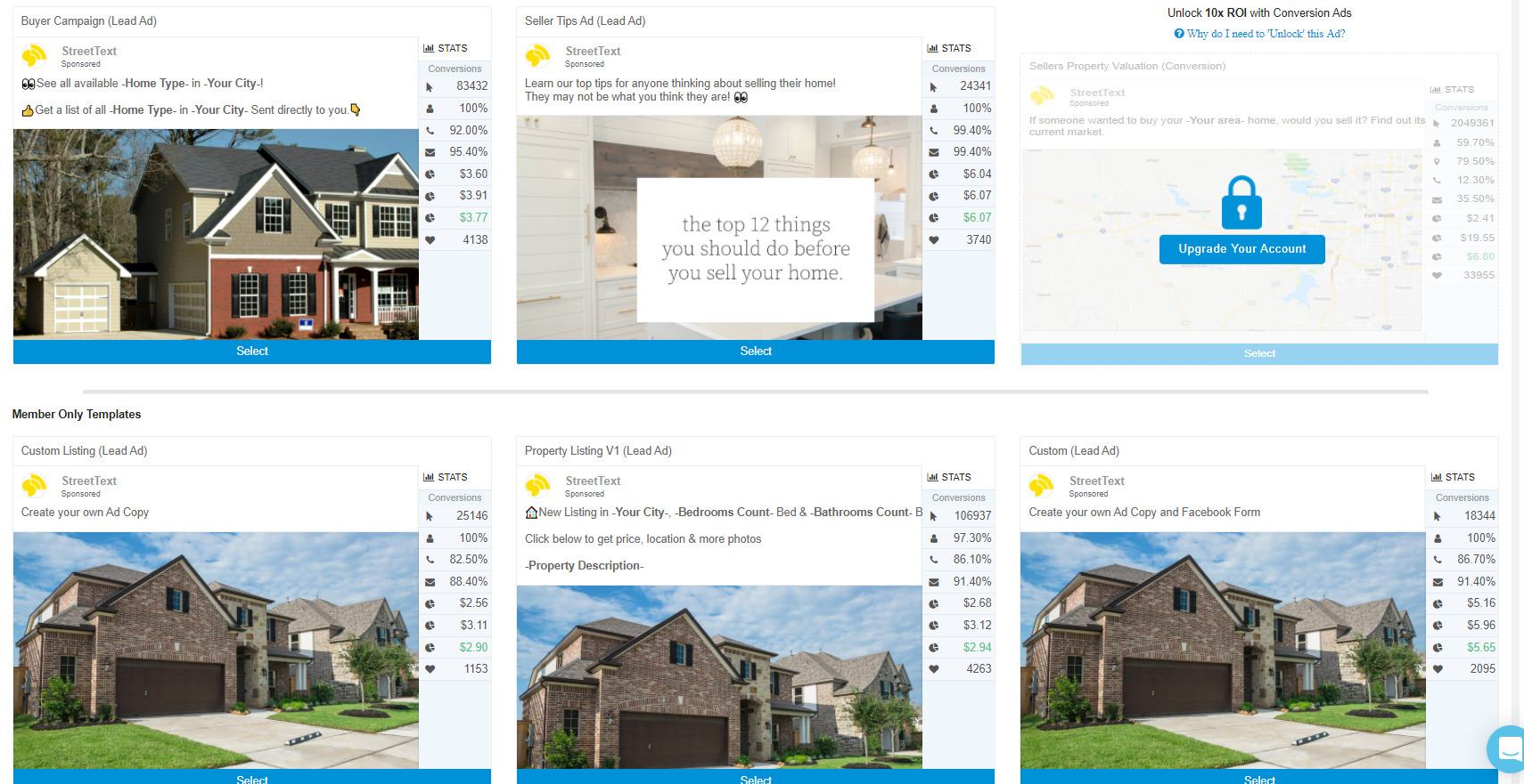Streettext is a real estate marketing platform that offers basic and simple image ads on Facebook. There are no videos and you do not get to choose the content to be shared. In fact, apart from stock images we could not find any other content to be used in the ads.