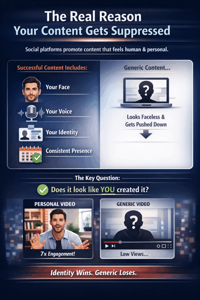 It’s because your content is missing the one thing algorithms prioritize most: your face and identity.