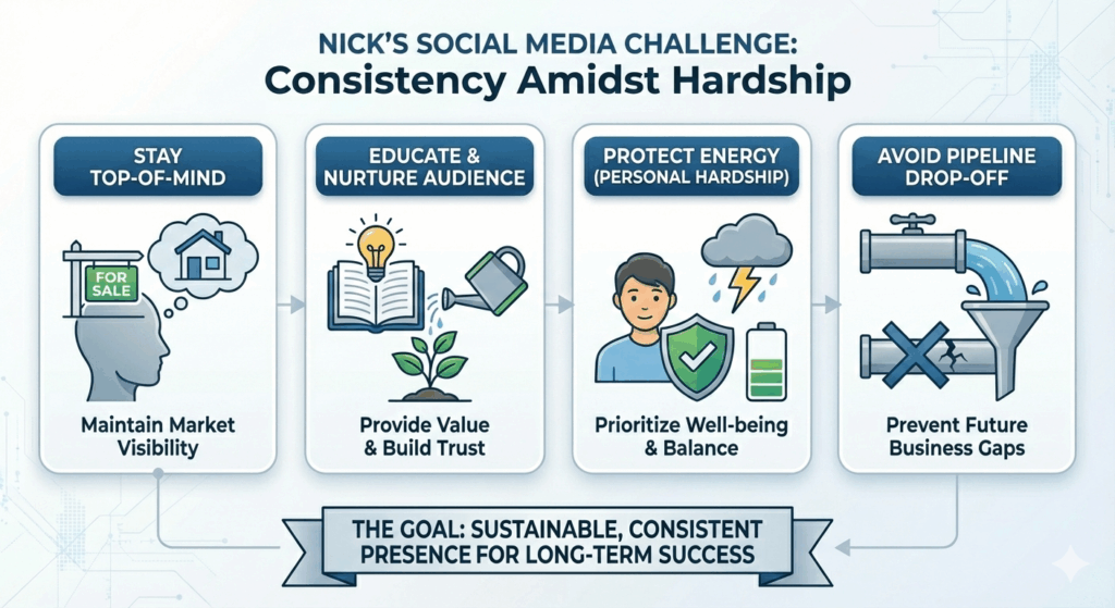 Most agents struggle to stay consistent on social media during normal market conditions. For Nick, the challenge was far greater.