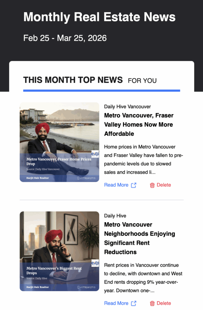 Harjit sent a monthly real estate newsletter using roomvu’s email distribution system.