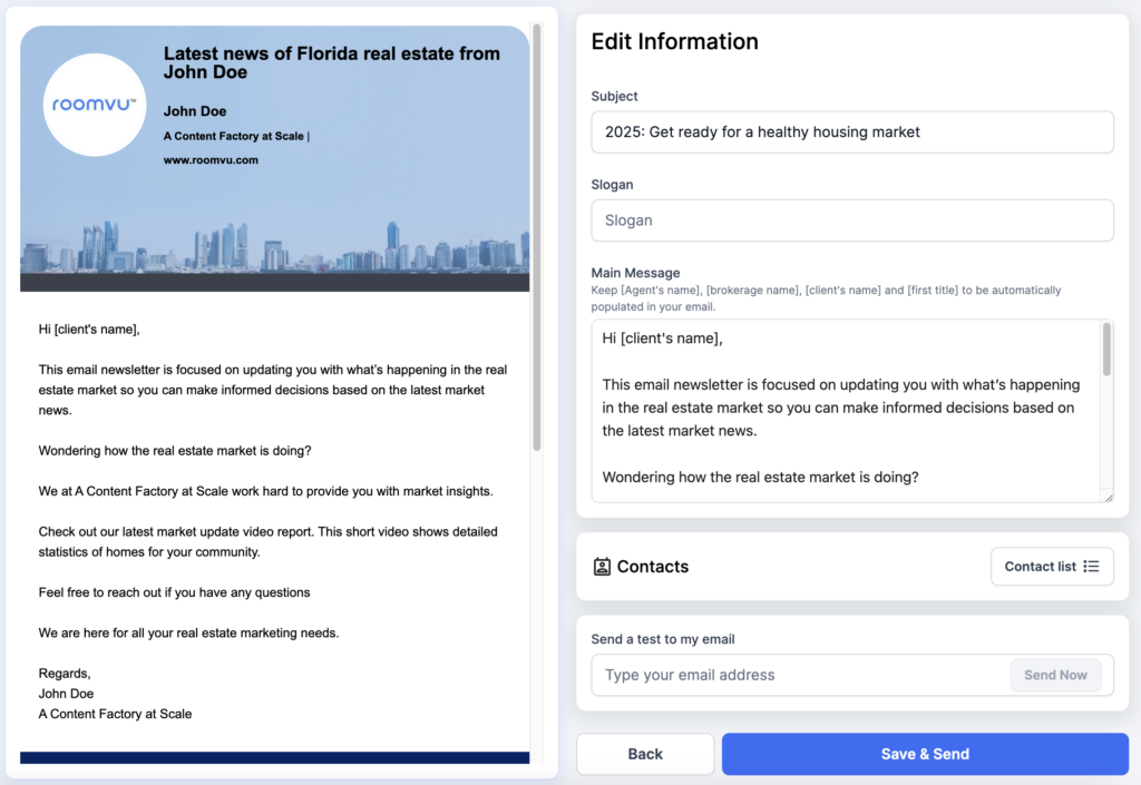 • Once everything is set, click “Save & Send” to share the email with your audience.