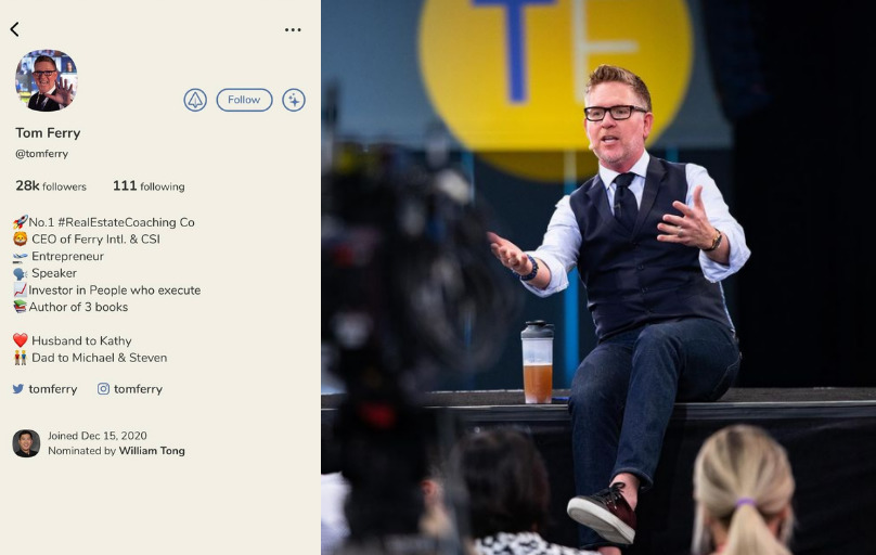 “Tom Ferry is the #1 ranked Real Estate Educator by Swanepoel Power 200 and the best-selling author of “Life! By Design” and “Mindset, Model and Marketing! As founder and CEO of Ferry International, the real estate industry’s leading coaching and training company, Tom’s ever-growing influence impacts professionals in a wide variety of ways – including rigorous accountability coaching, the popular #TomFerryShow delivering free, fresh and relevant real estate tips weekly, highly engaging training events, two best-selling books, and his legendary keynote speeches.”