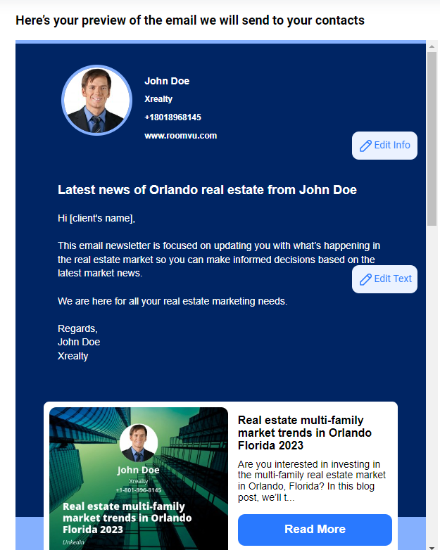 - Include a clear call to action: Make it easy for your subscribers to take the next step by including a clear call to action in your emails, such as “schedule a showing” or “view listing.”