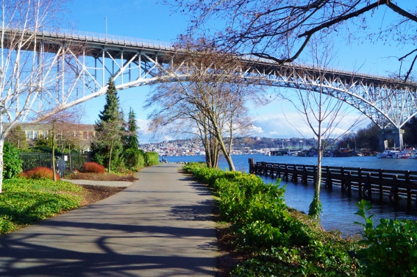 “Born as a railroad.” The 27-mile trail has become a major transportation corridor that serves thousands of commuter and recreational cyclists. It demonstrates that when the proper facilities are provided many people will chose healthy, pollution-free, non-motorized modes of travel. The trail can at times be busy and even crowded with cyclists, walkers, joggers and skaters. The trail begins at 11th Avenue NW in Ballard and follows along the Lake Washington Ship Canal and north along Lake Washington. At Blyth Park in Bothell the trail becomes the Sammamish River Trail and continues for 10 miles (16 km) to Marymoor Park, Redmond, on Lake Sammamish.